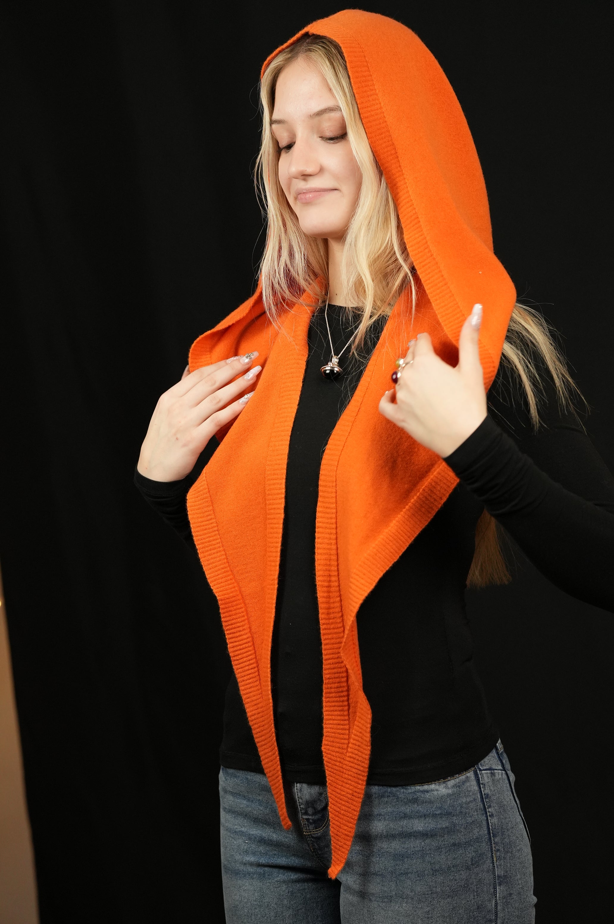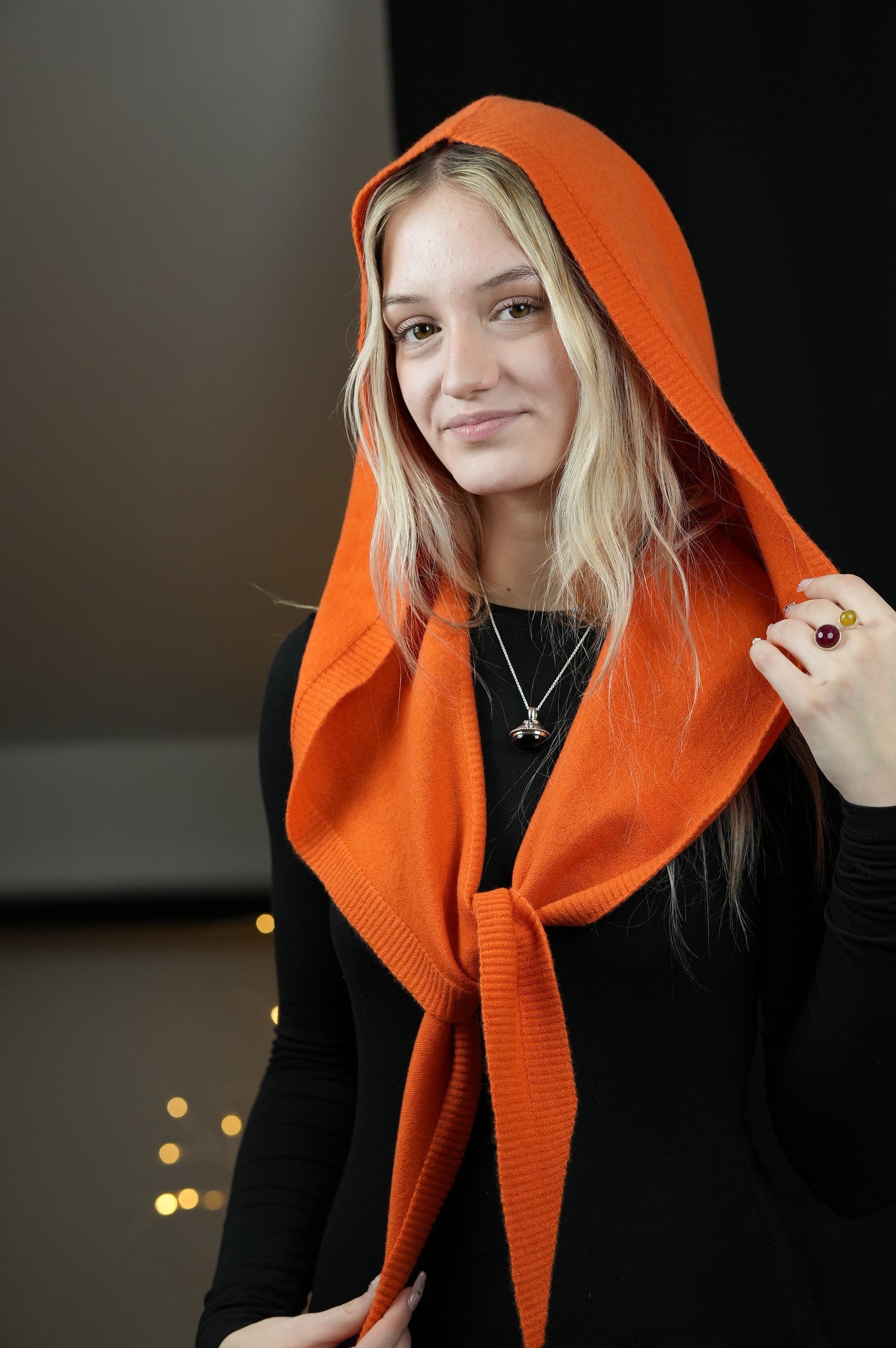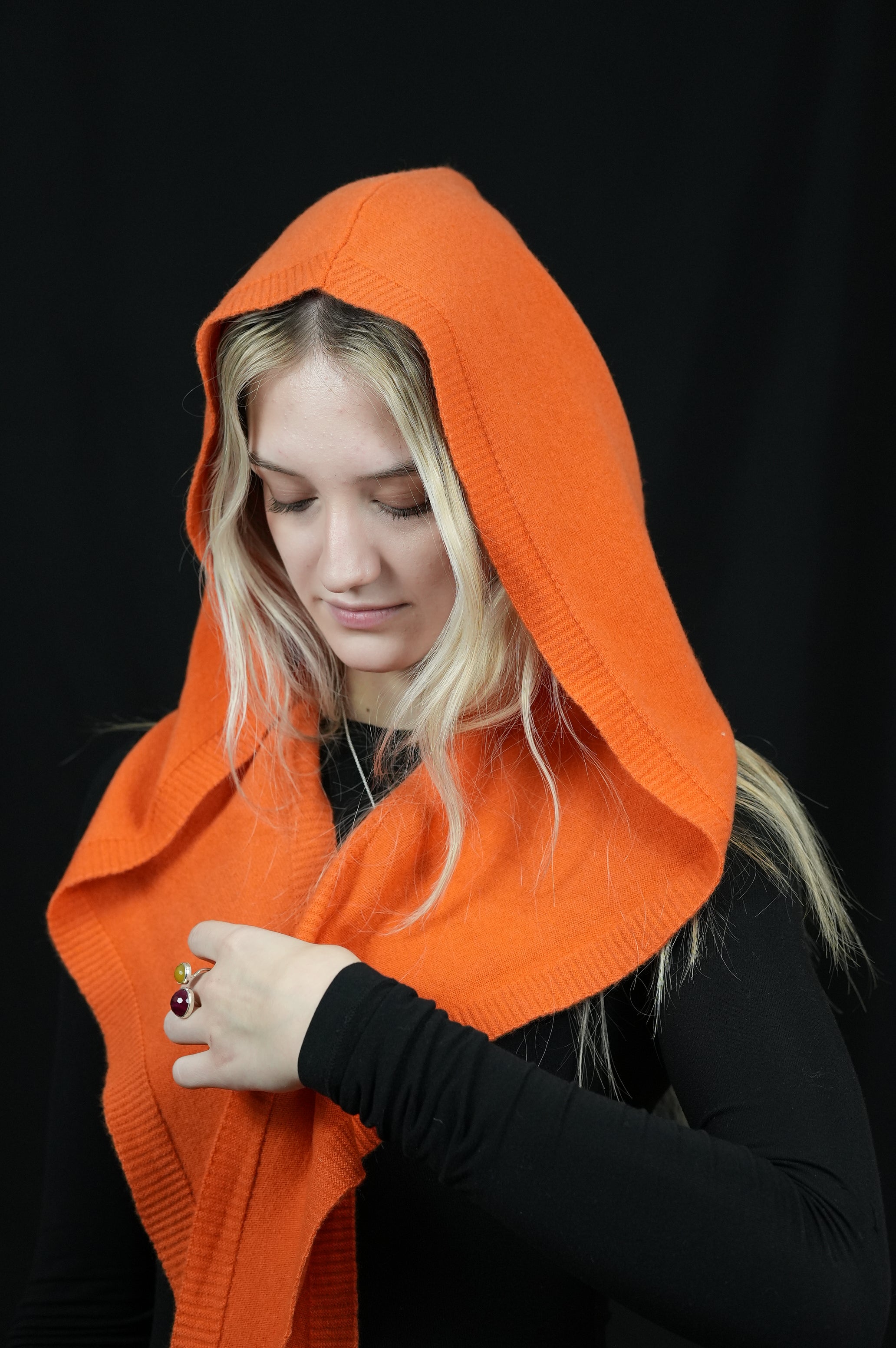 100% Merino Sophie Hood Scarf, Extra Long and Featherlight - ORANGE