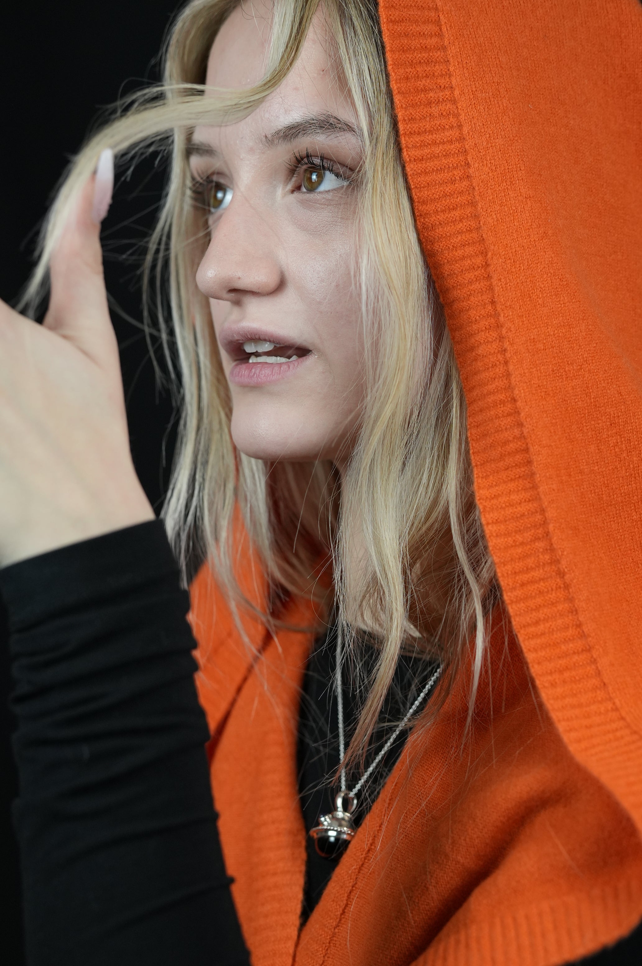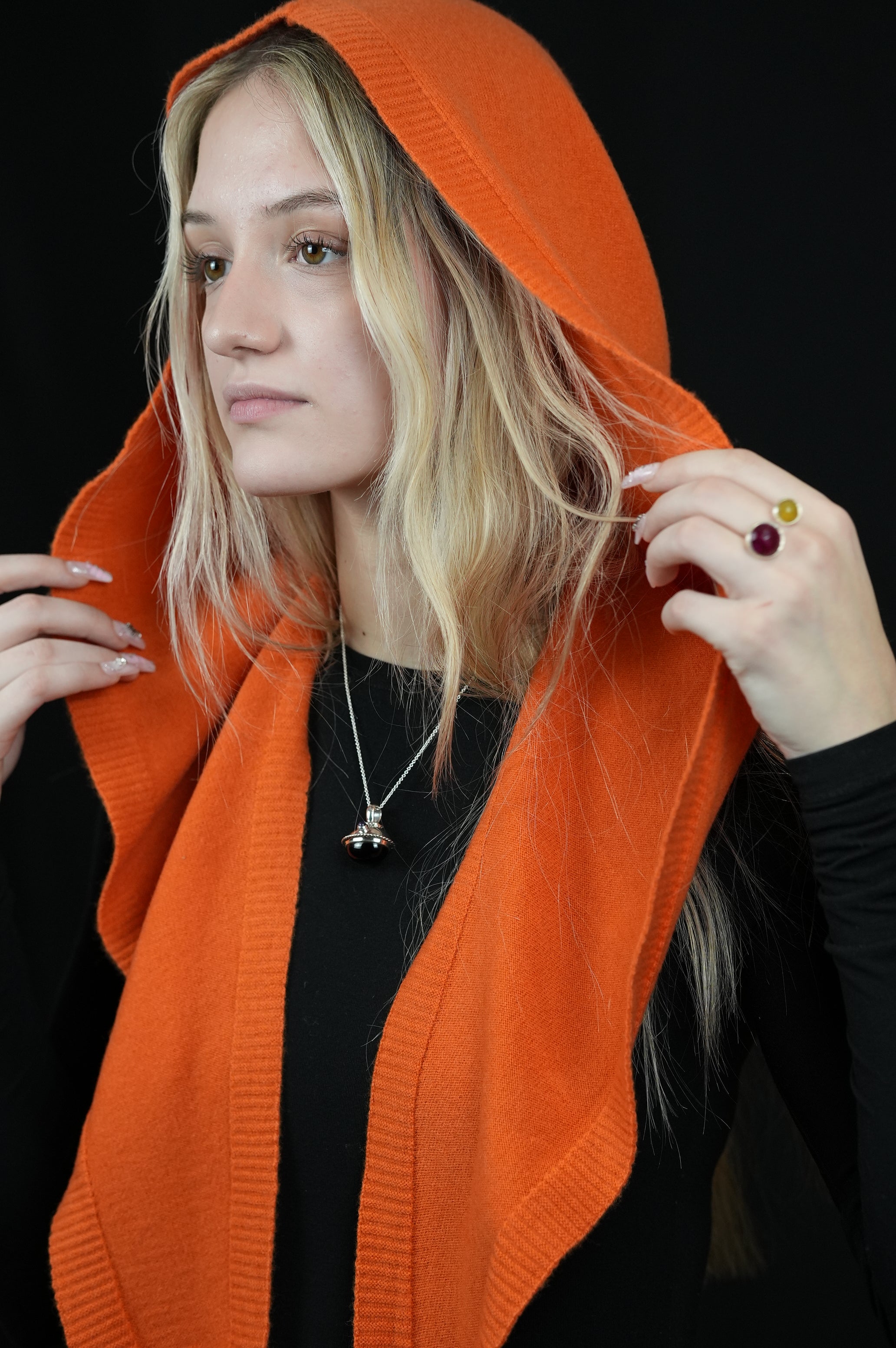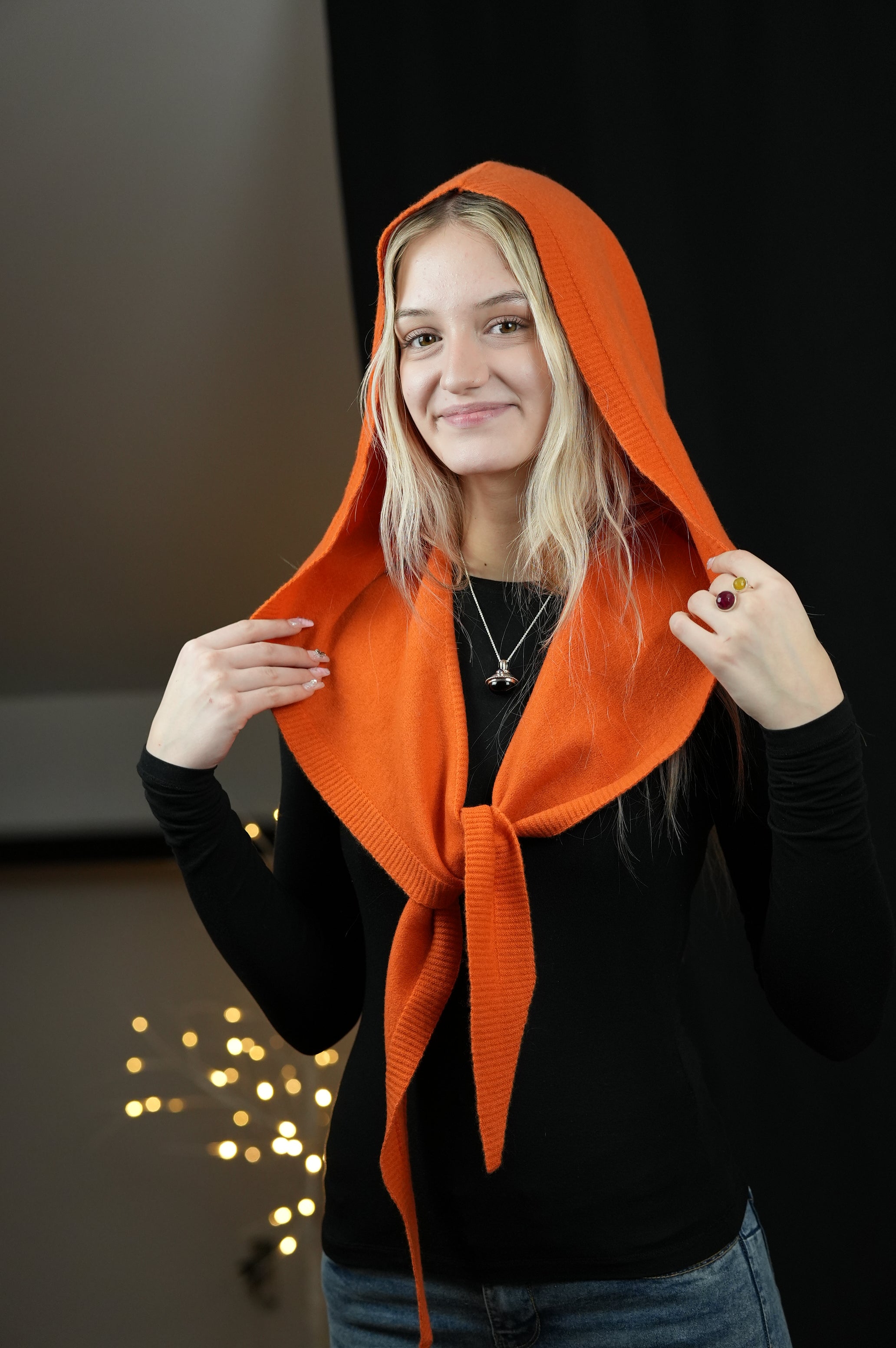 100% Merino Sophie Hood Scarf, Extra Long and Featherlight - ORANGE