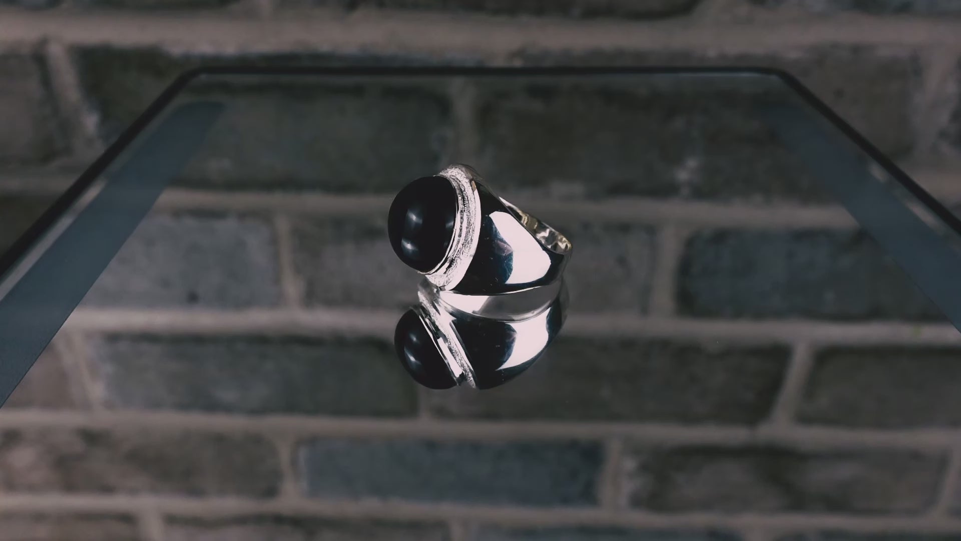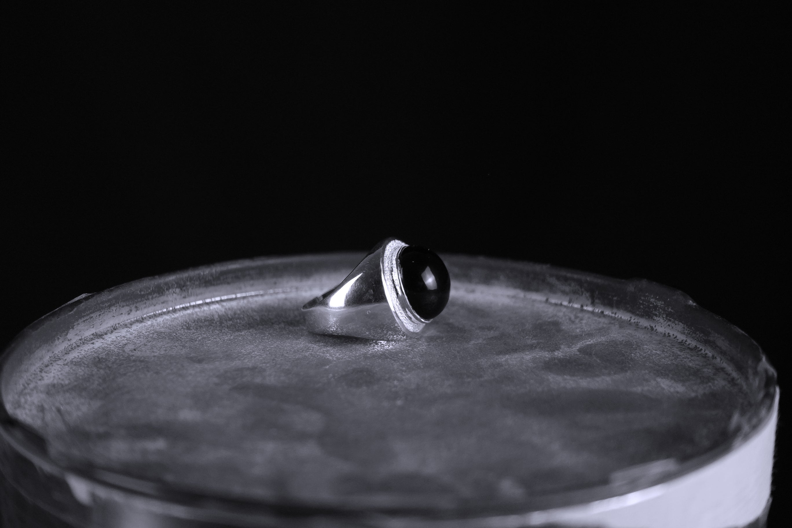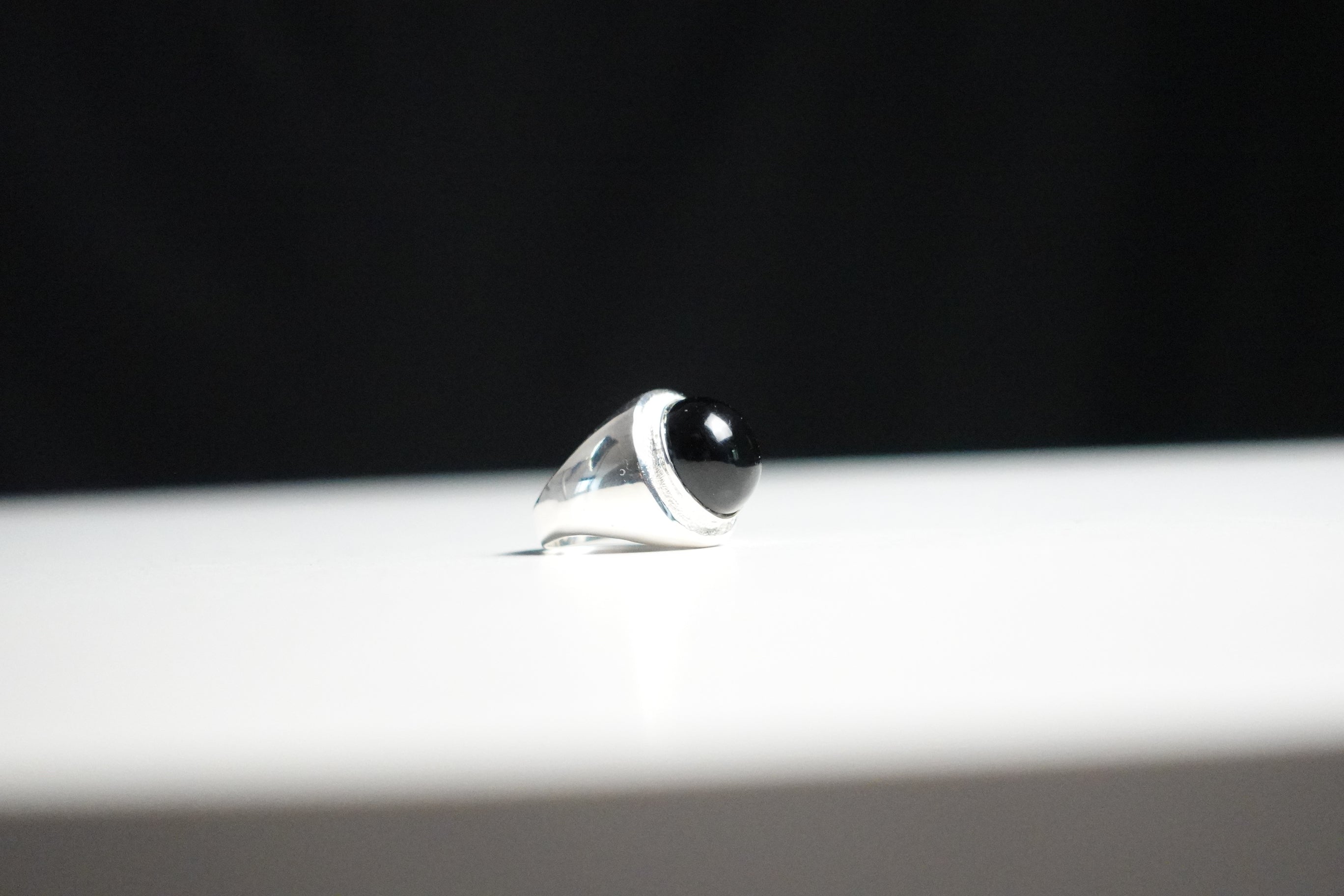 Handcrafted 925 Serling Silver with 14 mm polished black semi-precious Obsidian Dome