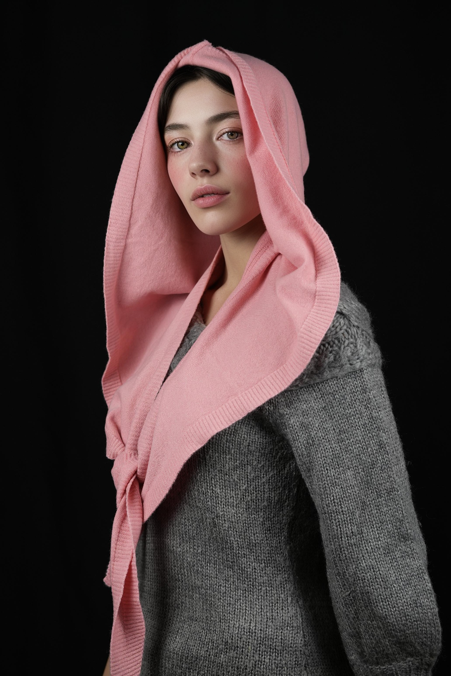 Triangle Mohair Hood Scarf, Extra Long and Featherlight - PINK